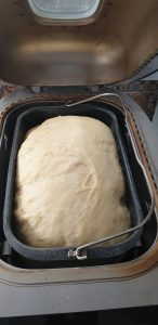 Se selectează programul de aluat (frământare + dospire). Timpul diferă în funcție de aparat, dar în medie este de aproximativ o oră și jumătate.